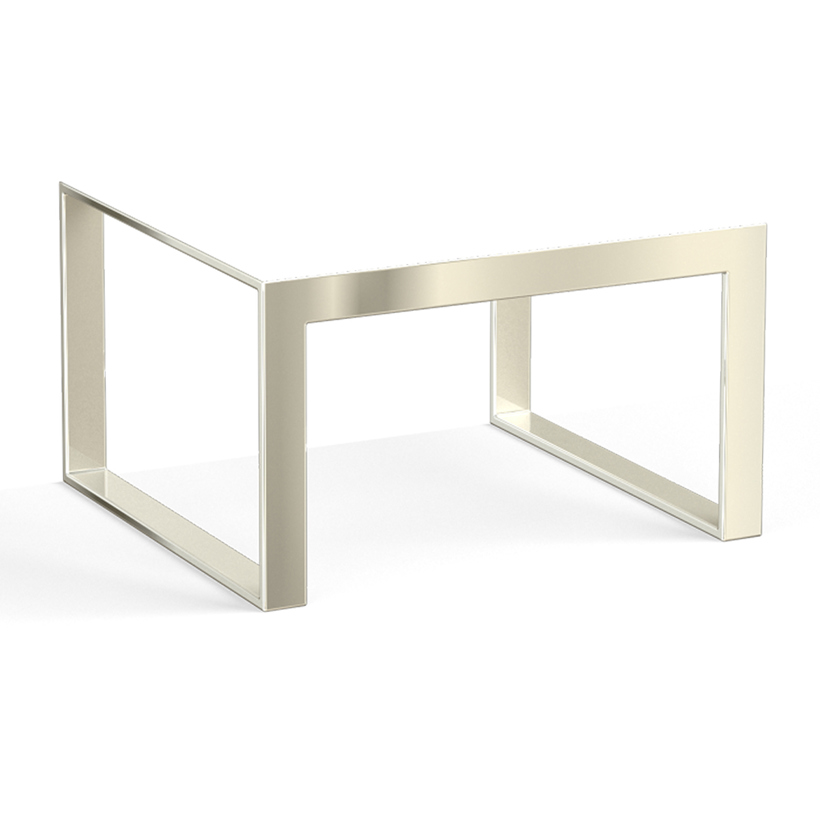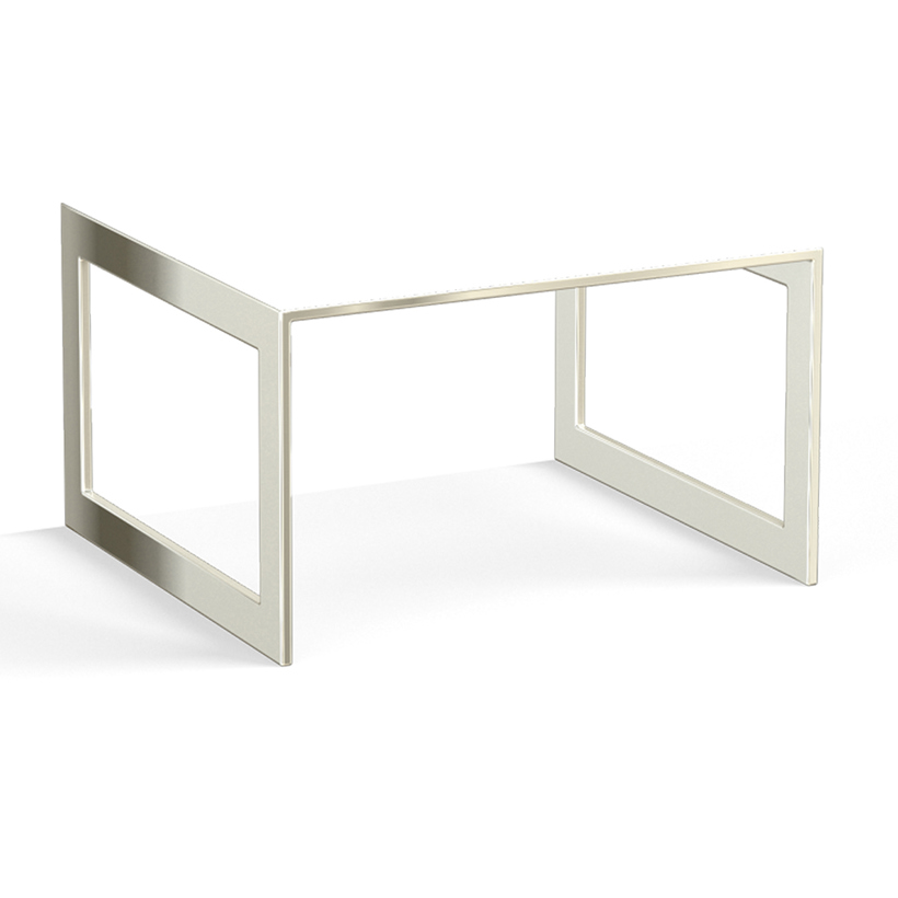 1/2" x 2" solid brass or steel tube. Fully welded with sculpted corners. Bases are decorative; cabinet must still be wall-mounted. Not available in Polished Chrome.