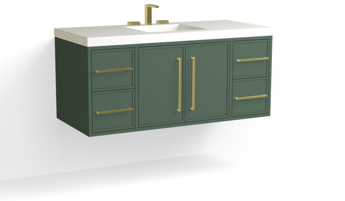 The Cohen vanity features a modern, thin-framed cabinet construction with a refined slim Shaker-style door and drawer design. Built for both style and functionality, Cohen is available in various configurations in sizes from 24" - 72" as standard. This design blends classic craftsmanship with contemporary simplicity—ideal for transitional and modern interiors alike.
