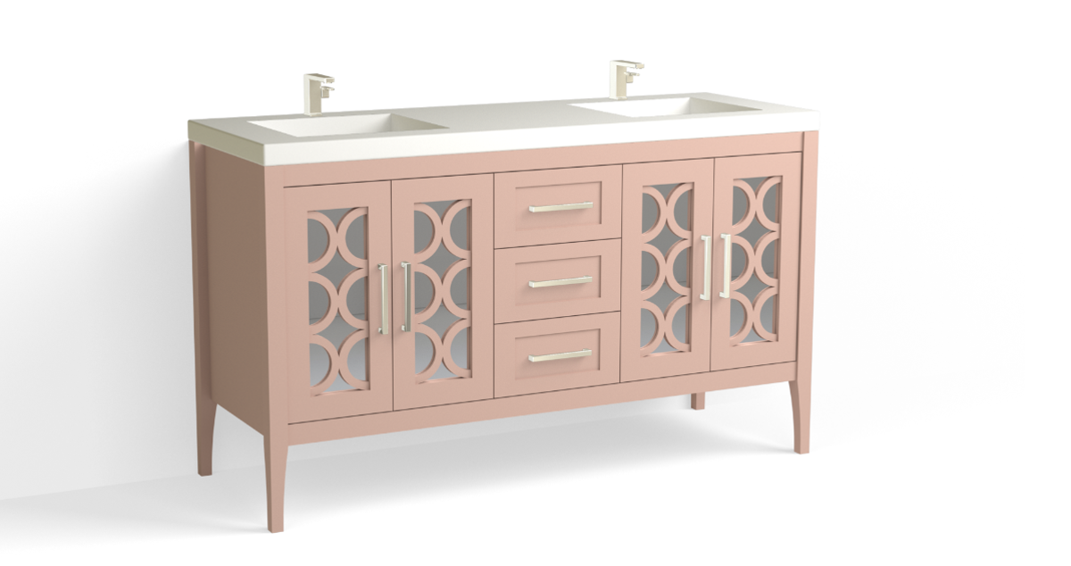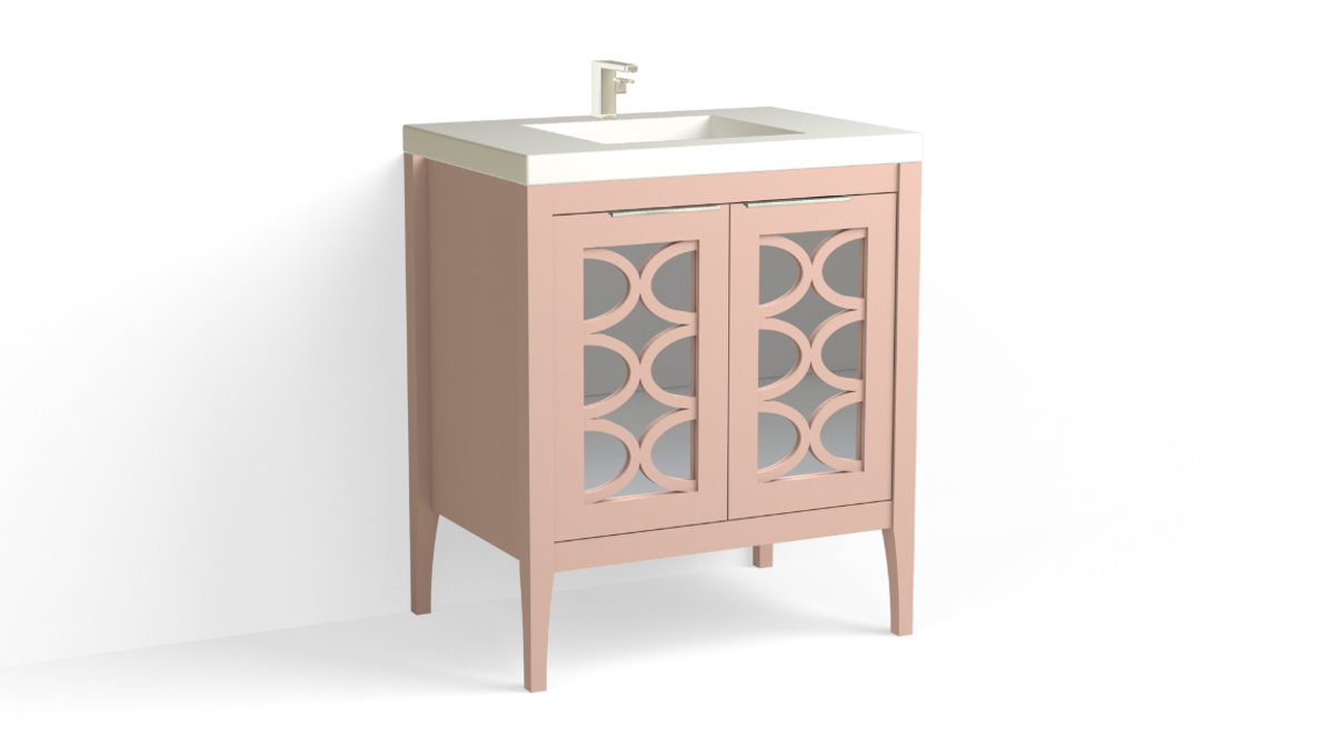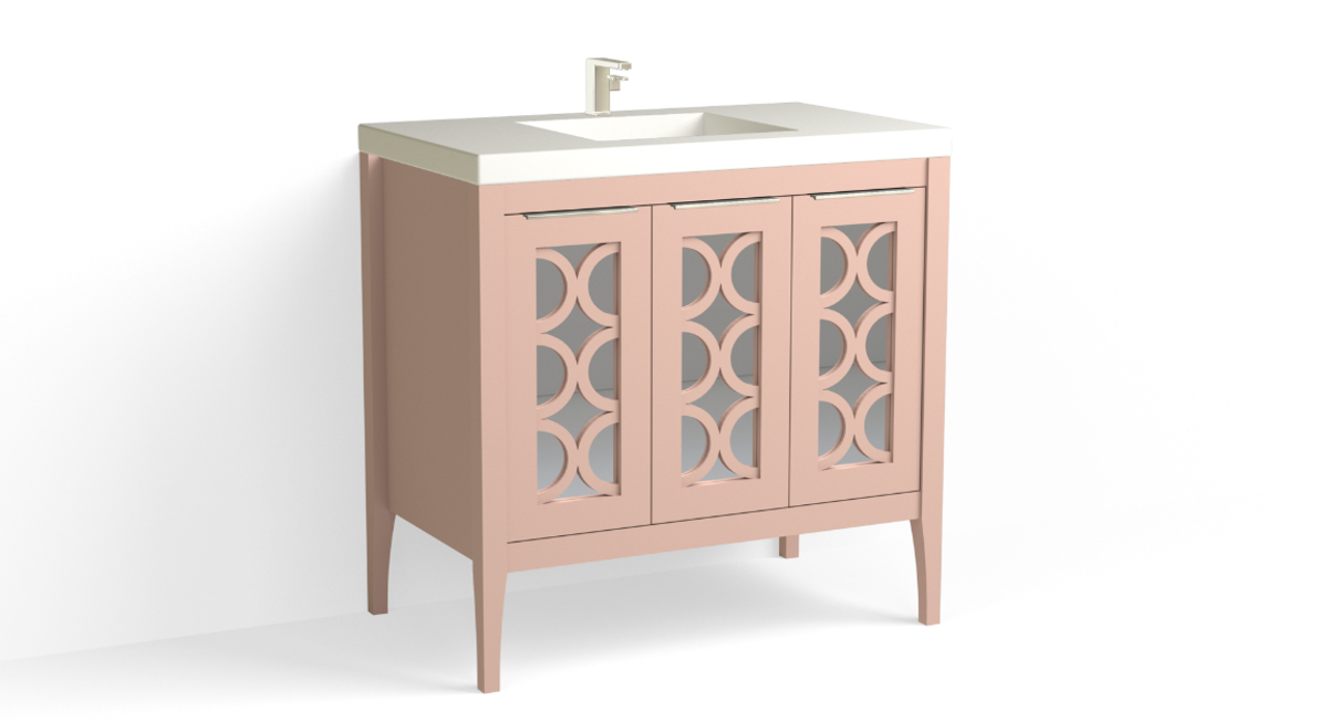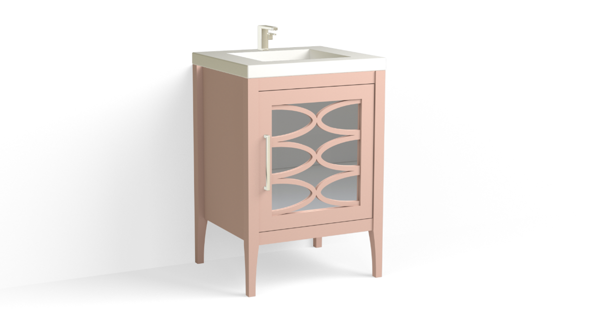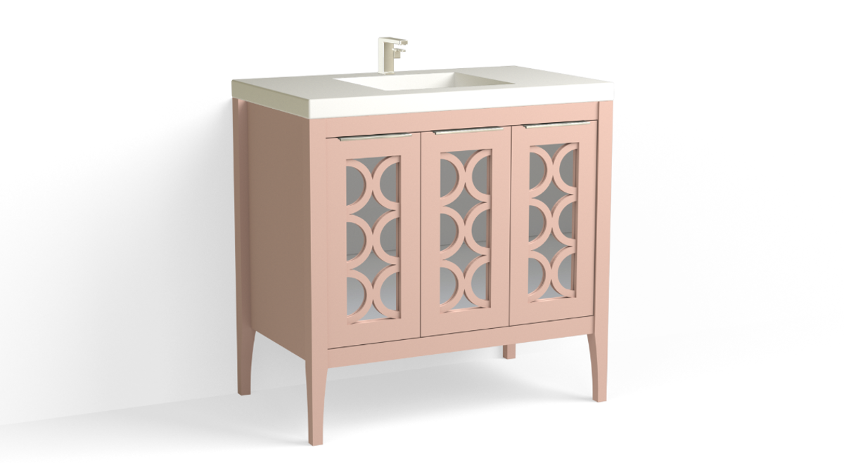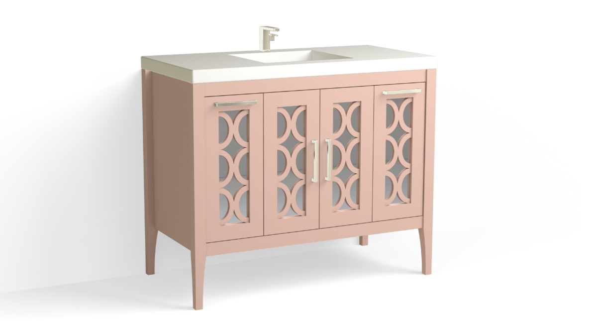 Our first design featuring mirror under a decorative grille, Stephen is the ultimate Hollywood Glam design. Utilizing our pullout concept, Stephen provides loads of storage while maintaining the style of the decorative full height door.