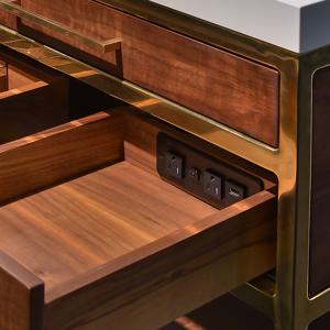 Add our Power Drawer option to convert almost any drawer into a charging station. Our Power Drawer includes 2 standard receptacles and 1 usb outlet mounted flush in the back of the drawer. Our special wire management system is included behind the drawer so you never have to worry about crimped cords, prohibited drawer movement, etc. We've thought it all out so you don't have to.