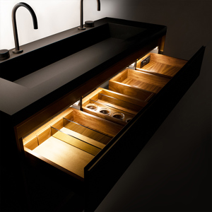 High quality stains applied to the best walnut and white oak make up our B-Wood finish options. Prized for their compatibility between all of our series, B-Wood finishes give your vanity that natural wood look and feel.