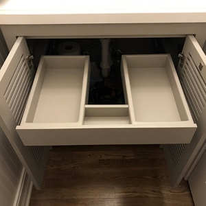 - Will be mounted on front side of drawer in sink cabinet 30"W or smaller
