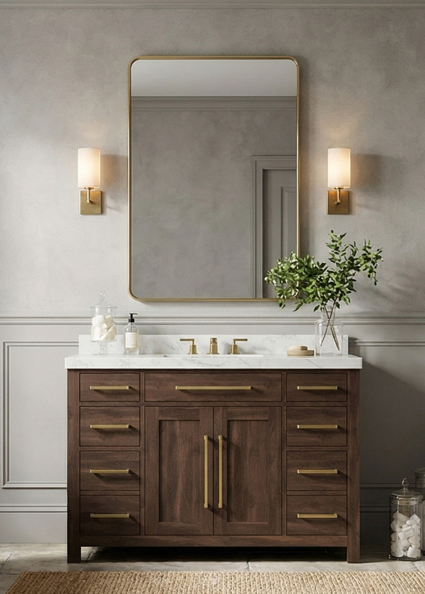 Combine 2 different finishes on one vanity by using our Combo Finish option. Just be sure to clearly identify which finish goes where.