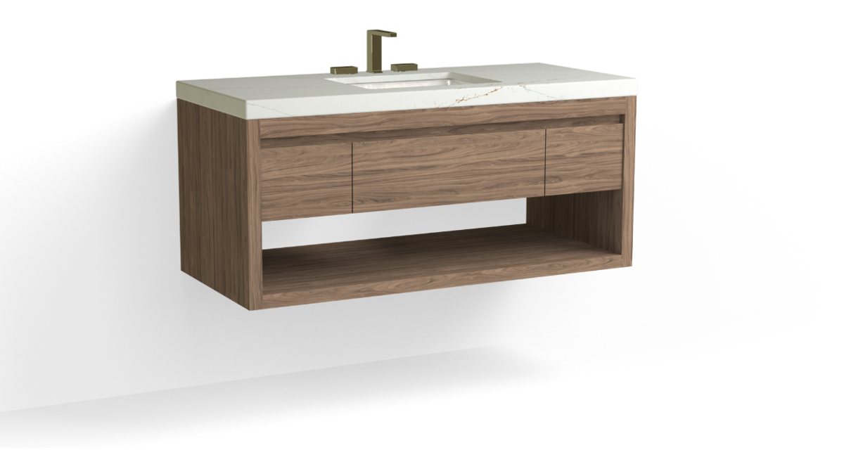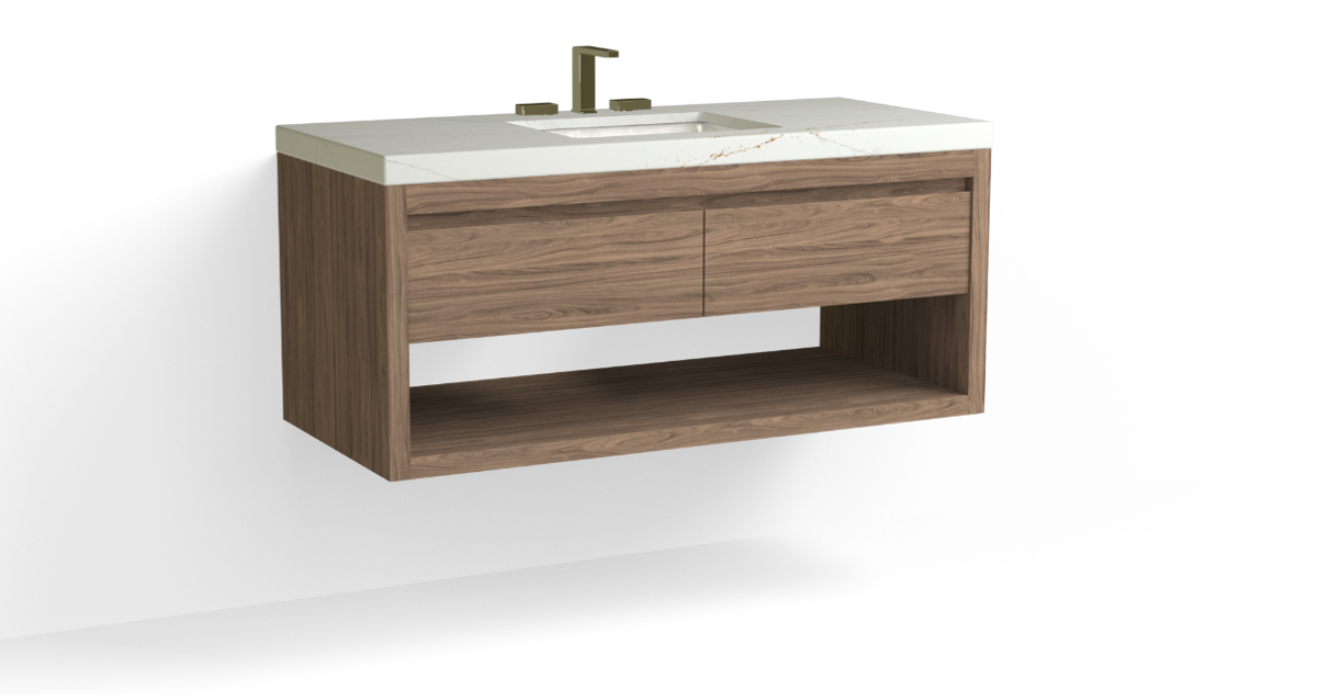 Textured laminate surfaces, the C-Tex finish options are a great modern alternatives to natural wood substrates. These finishes are becoming more and more popular in contemporary designs due to their versatility and ability to have a continuous/match grain. These finishes look fantastic when used for our longer vanity options but don't underestimate their ability to command in smaller spaces.