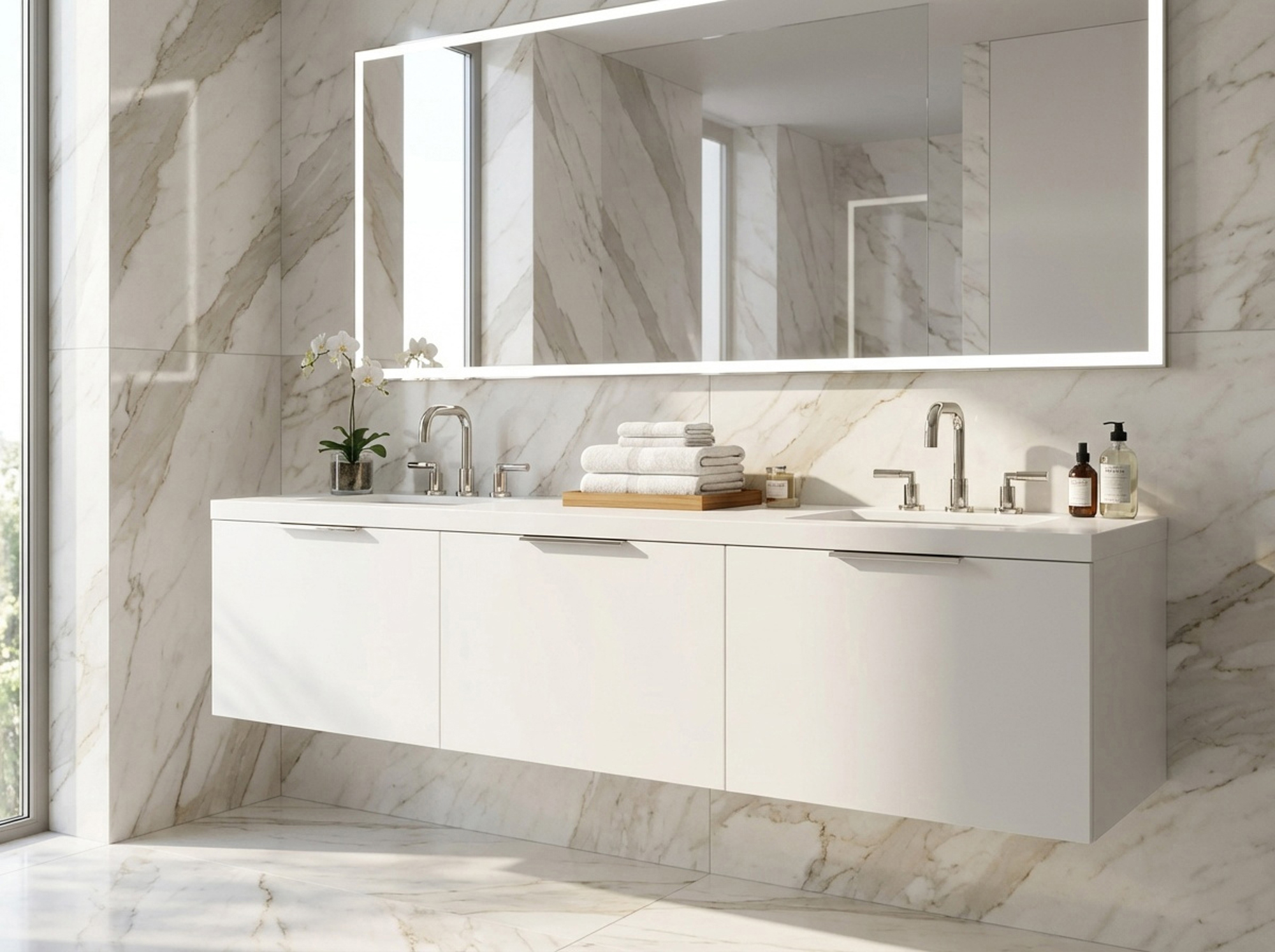 - Requires 24" switched power whip placed 25"H above finished floor, 6" from right side of vanity.
