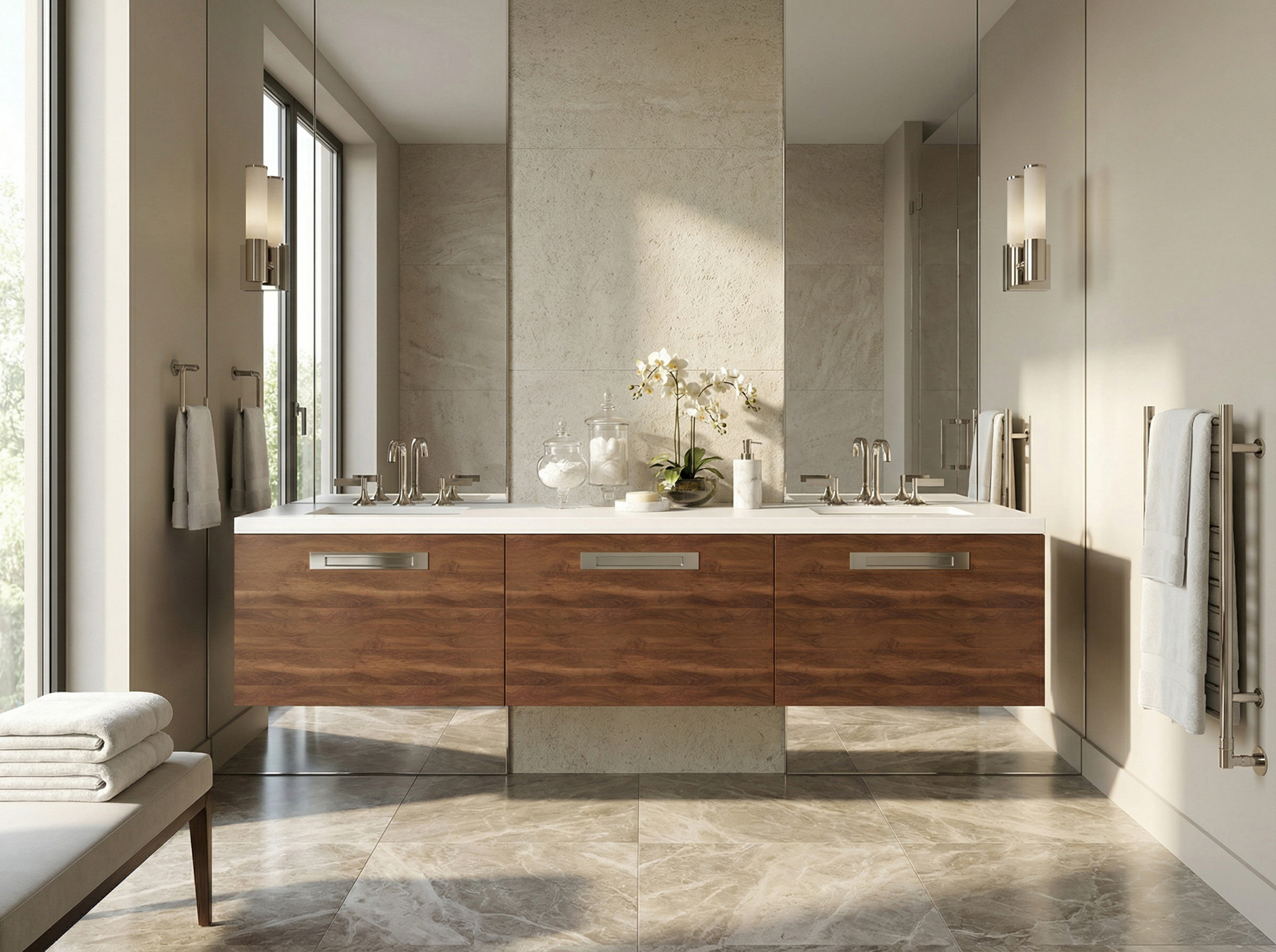 High quality stains applied to the best walnut and white oak make up our B-Wood finish options. Prized for their compatibility between all of our series, B-Wood finishes give your vanity that natural wood look and feel.