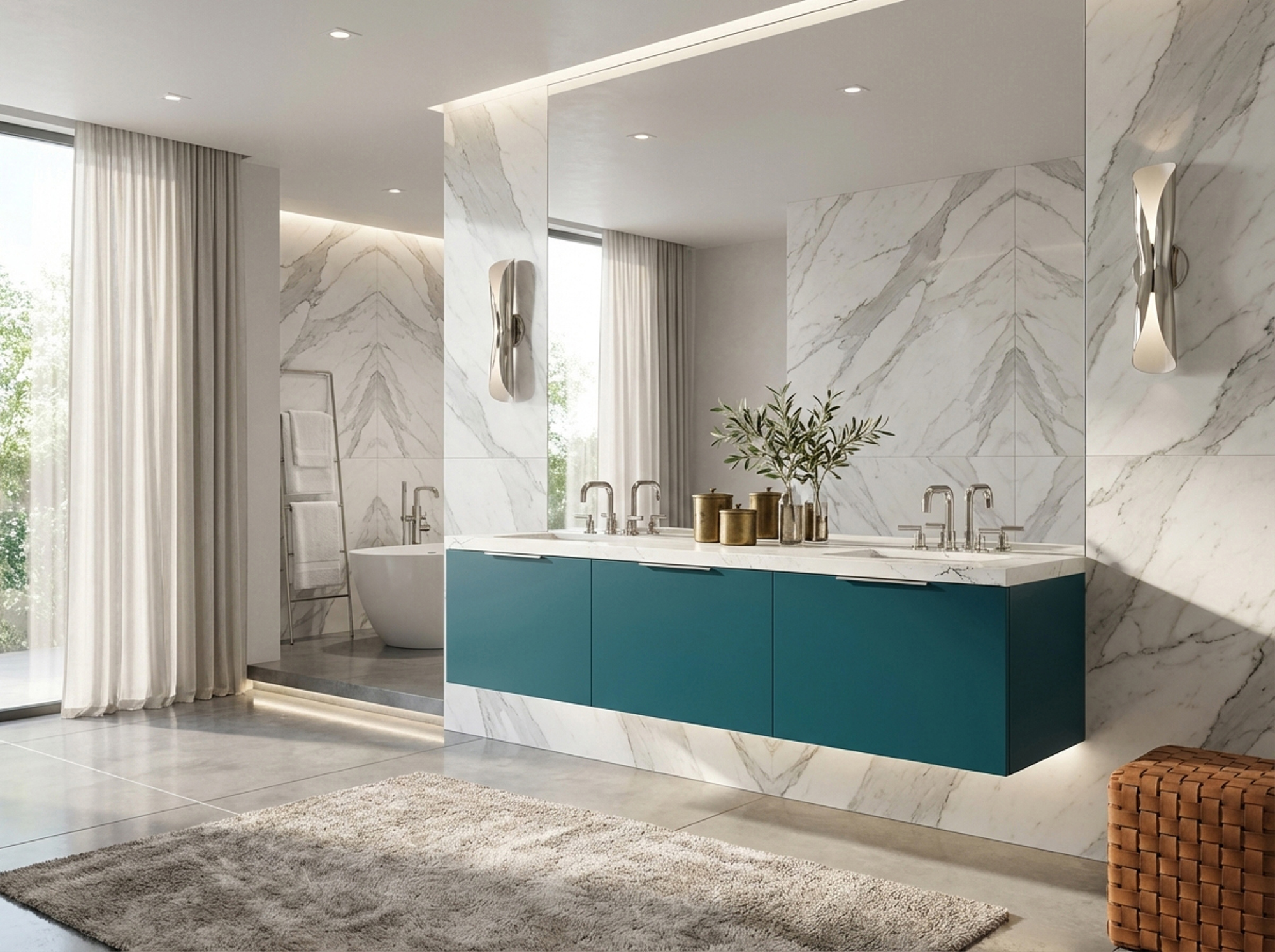 1/2" x 2" solid brass or steel tube. Fully welded with sculpted corners. Bases are decorative; cabinet must still be wall-mounted. Not available in Polished Chrome.