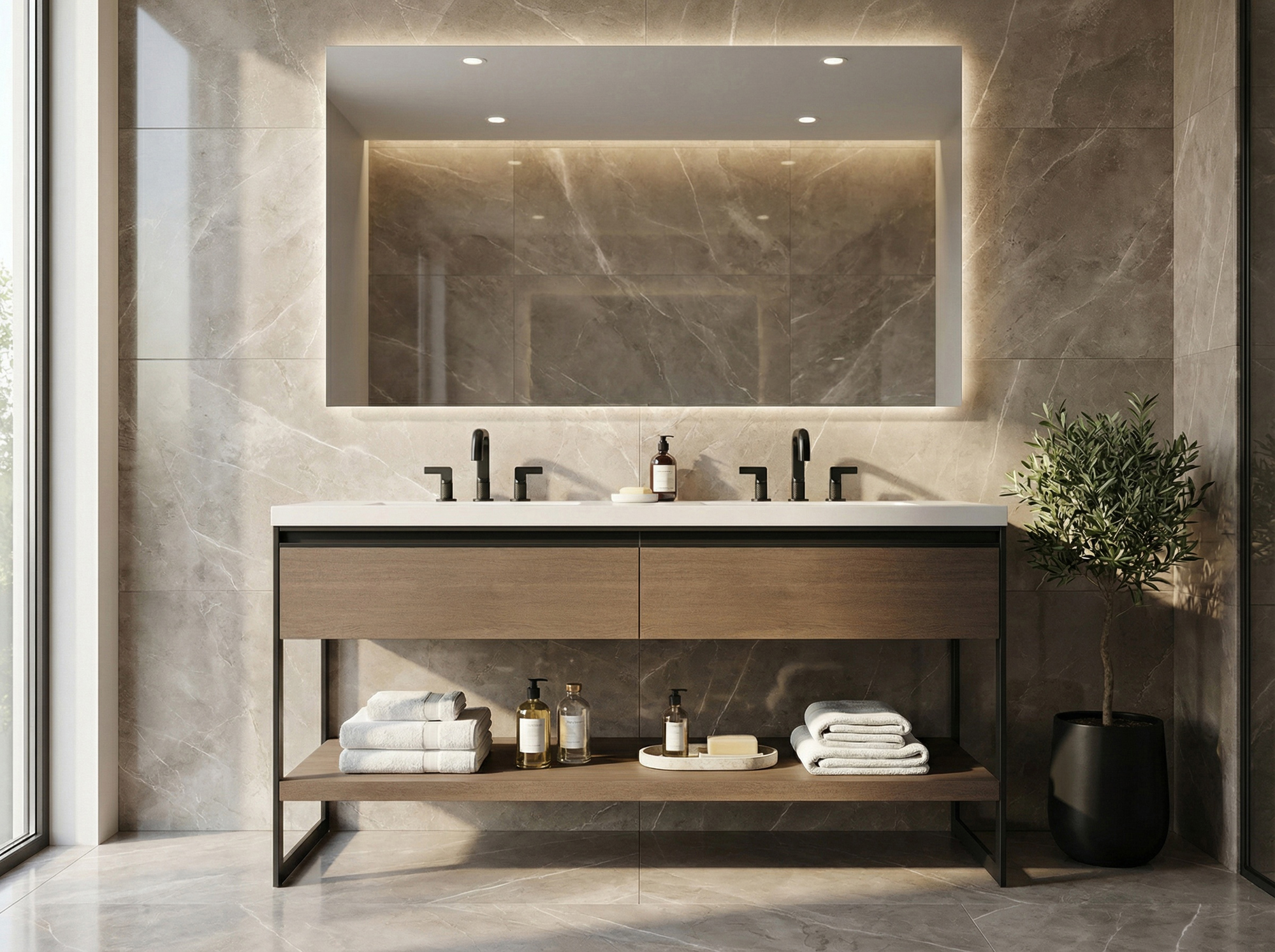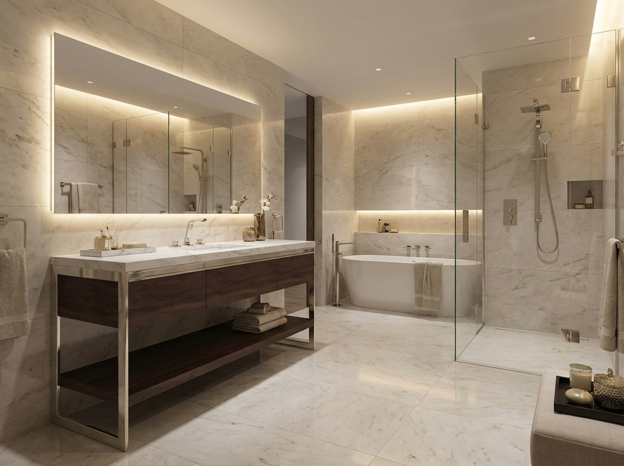 - 3000K warm white led to accent the space below a vanity