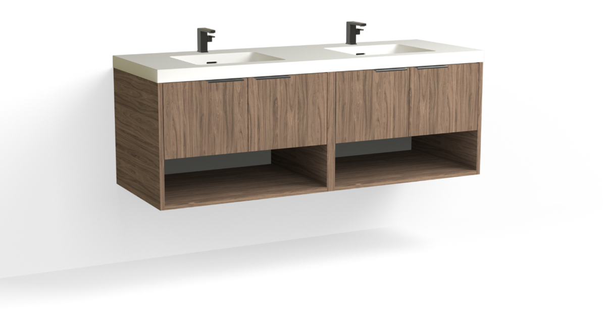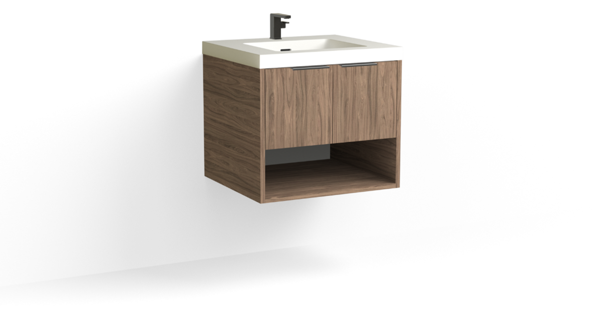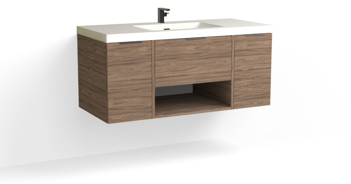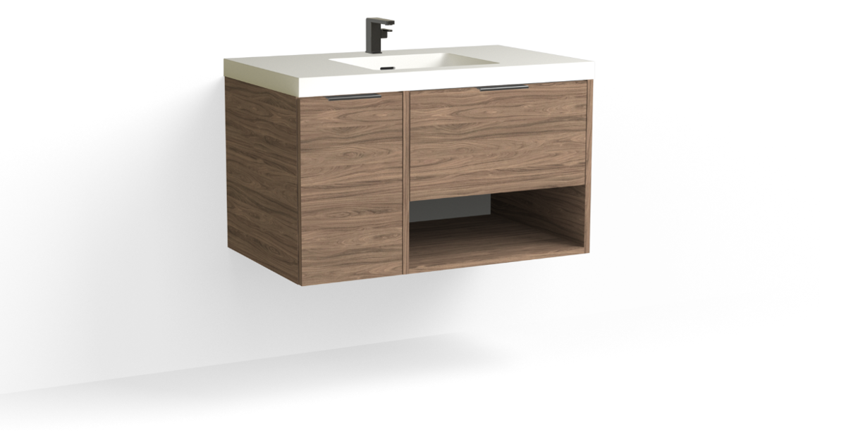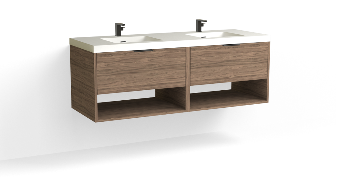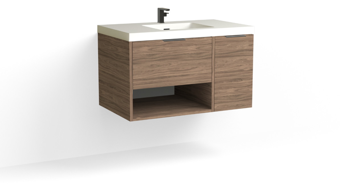 This vanity is part of our quick ship program that allows you to purchase ready made, top quality, high end bathroom vanities and have them shipped to you at an expedited rate. Modo includes a split drawer with an open shelf. New for 2025, Expanded colors, configurations and options available with a longer lead time.