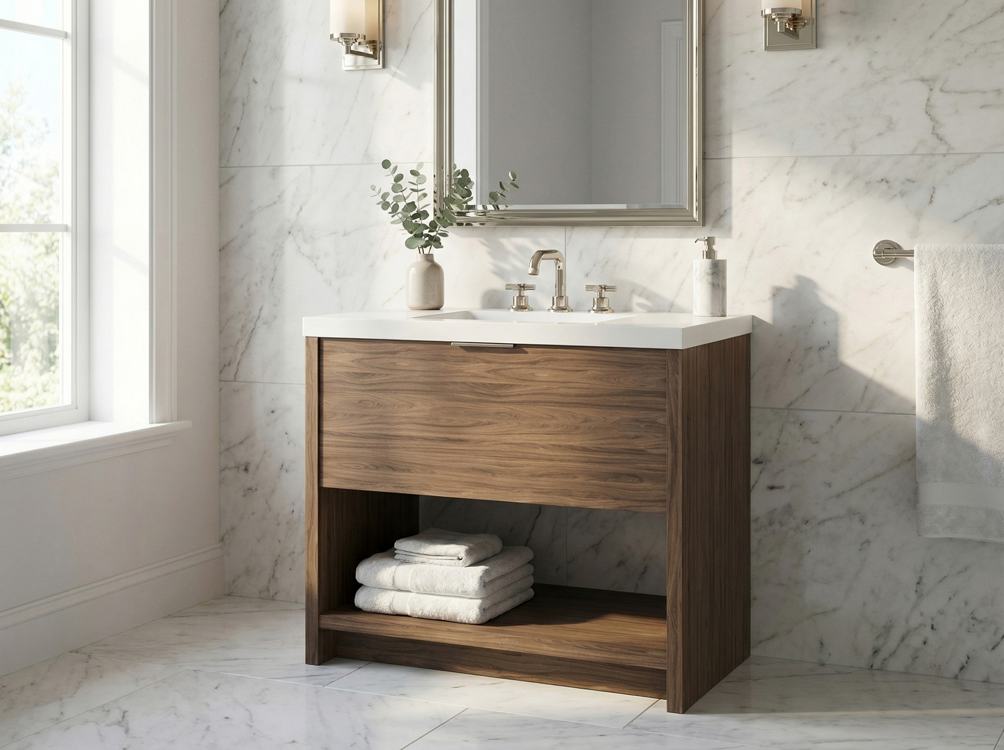 This vanity is part of our quick ship program that allows you to purchase ready made, top quality, high end bathroom vanities and have them shipped to you at an expedited rate. Vista comes in seven different sizes and 10 finishes and includes a single split drawer that provides ample storage space and a shelf. New for 2025, Expanded colors, configurations and options available with a longer lead time.