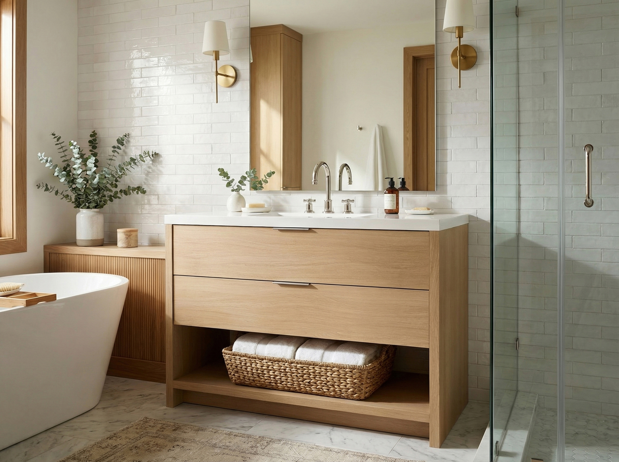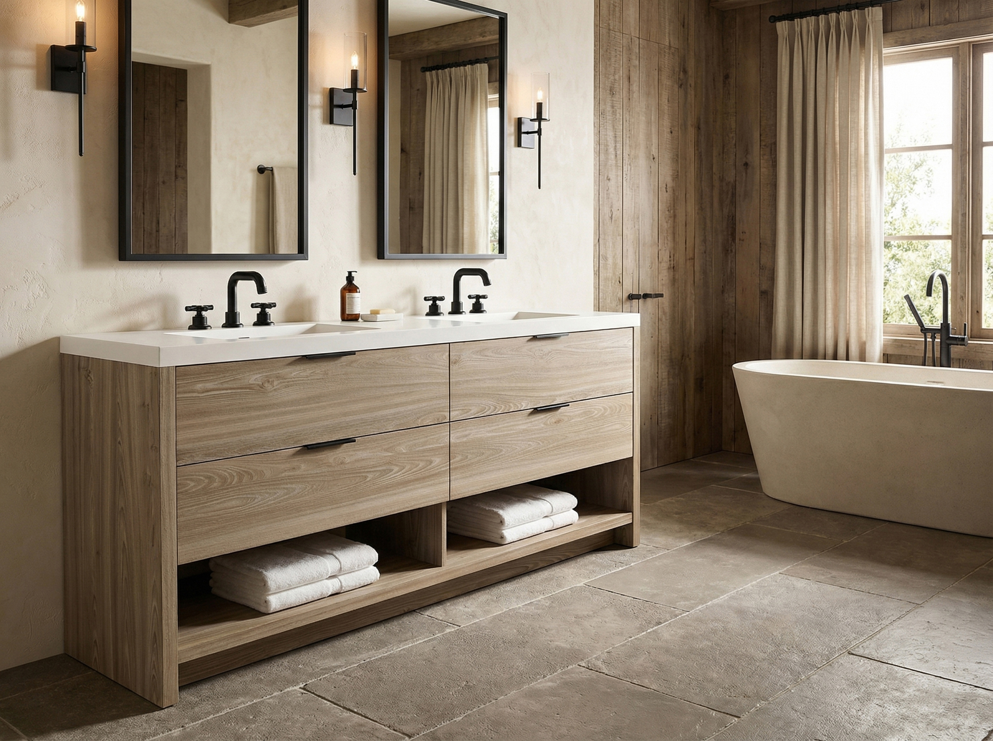 Textured laminate surfaces, the C-Tex finish options are a great modern alternatives to natural wood substrates. These finishes are becoming more and more popular in contemporary designs due to their versatility and ability to have a continuous/match grain. These finishes look fantastic when used for our longer vanity options but don't underestimate their ability to command in smaller spaces.