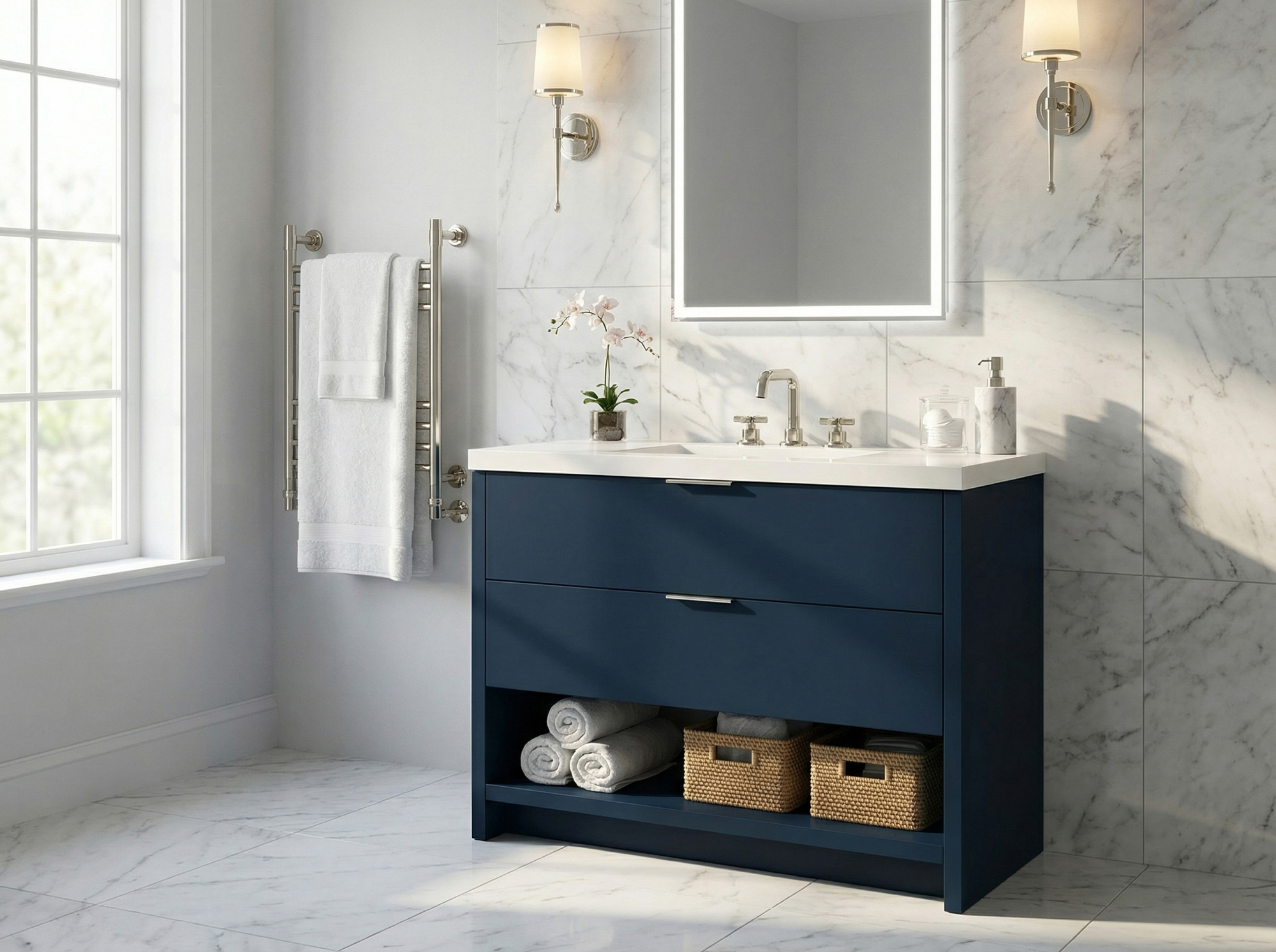 This vanity is part of our quick ship program that allows you to purchase ready made, top quality, high end bathroom vanities and have them shipped to you at an expedited rate. Vue comes in seven different sizes and 10 finishes and includes two split drawers that provide ample storage space and a shelf. New for 2025, Expanded colors, configurations and options available with a longer lead time.